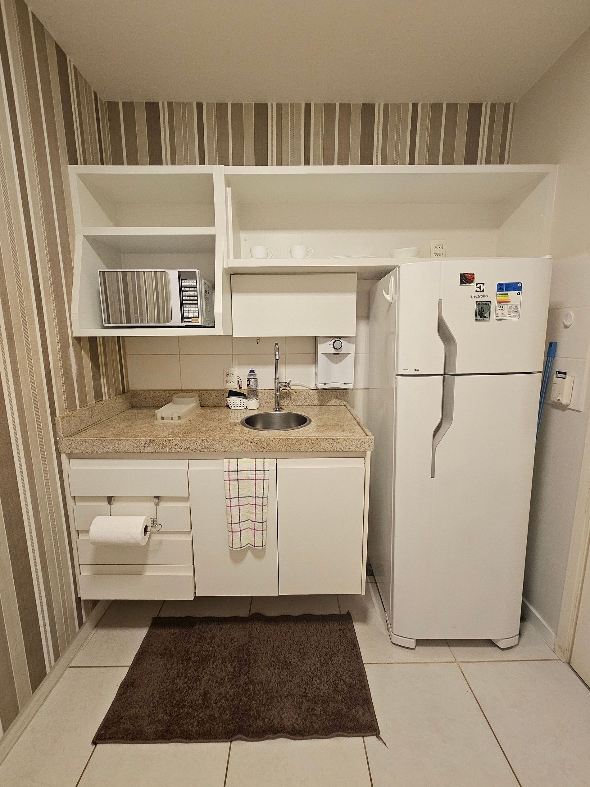 O flat, com 38m², possui ar condicionado e black-out para uma noite tranquila de sono. Além disso, o hotel conta com serviço de quarto 24hrs, disponibilizamos roupas de cama limpas e higienizadas e um chuveiro incrível para um banho relaxante. E se caso preferir preparar sua própria comida, o ap possui cozinha compacta para refeições básicas, e geladeira para guardar o seus alimentos. O apartamento também conta com uma TV Smart de 50 polegadas. A recepção e segurança funcionam 24 horas por dia, proporcionando tranquilidade durante toda a sua estadia.