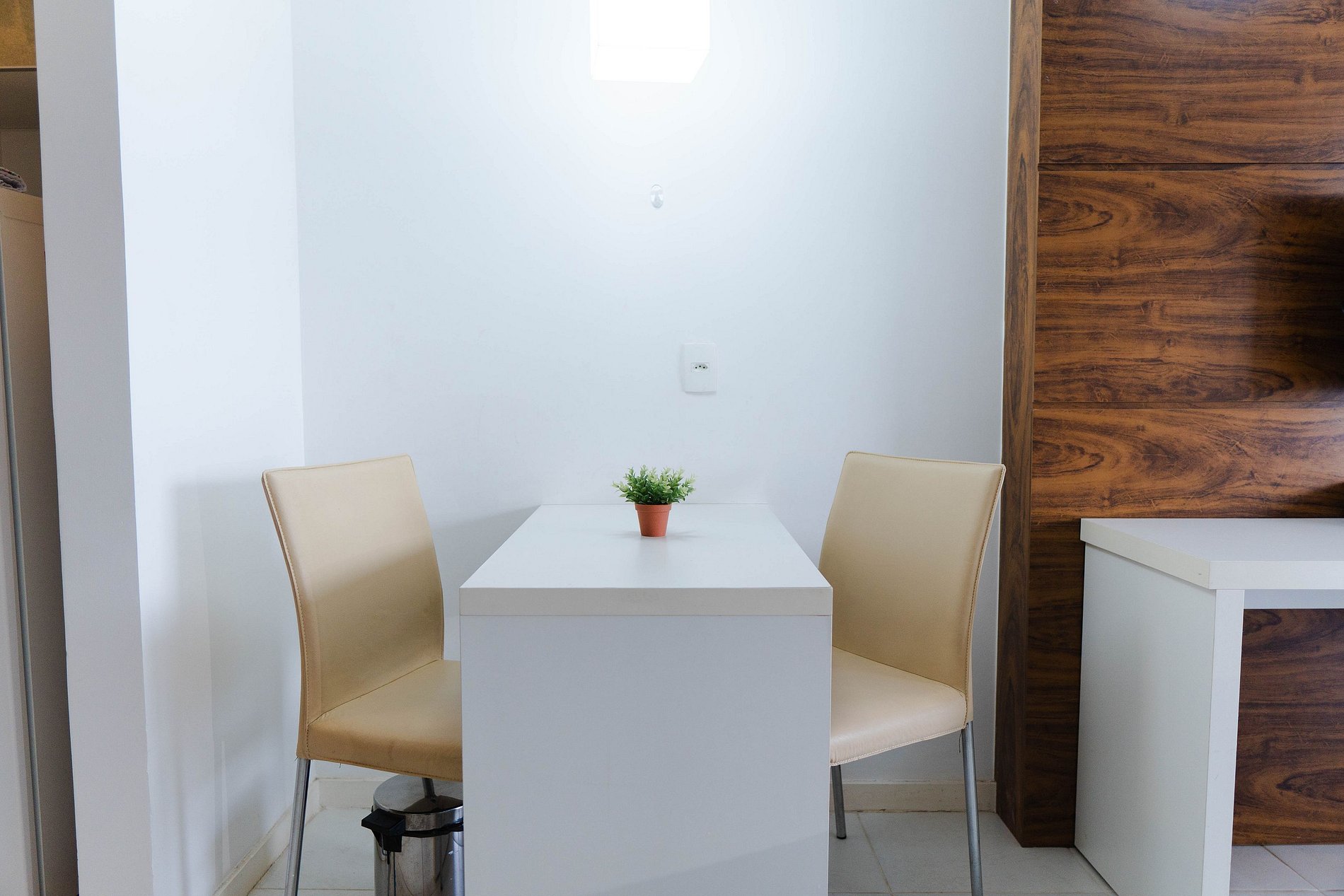 O flat, com aproximadamente 27m², possui ar condicionado e black-out para uma noite tranquila de sono. Além disso, o hotel conta com serviço de quarto 24hrs onde você poderá solicitar almoço/janta (consulte valores). Disponibilizamos roupas de cama limpas e higienizadas e um chuveiro incrível para um banho relaxante. E se caso preferir preparar sua própria comida, o ap possui cozinha compacta para refeições básicas, e geladeira para guardar o seus alimentos. A recepção e segurança funcionam 24 horas por dia, proporcionando tranquilidade durante toda a sua estadia.