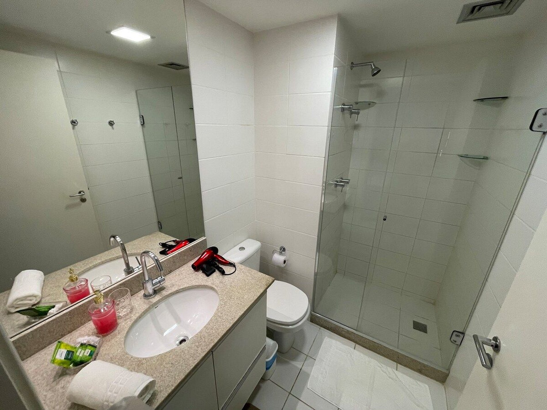 - Nosso apartamento possui 2 camas de solteiro sendo uma das camas bicama e para o 4º hóspede disponibilizamos um colchão extra. (As camas de solteiro podem ser montadas como uma cama super king)