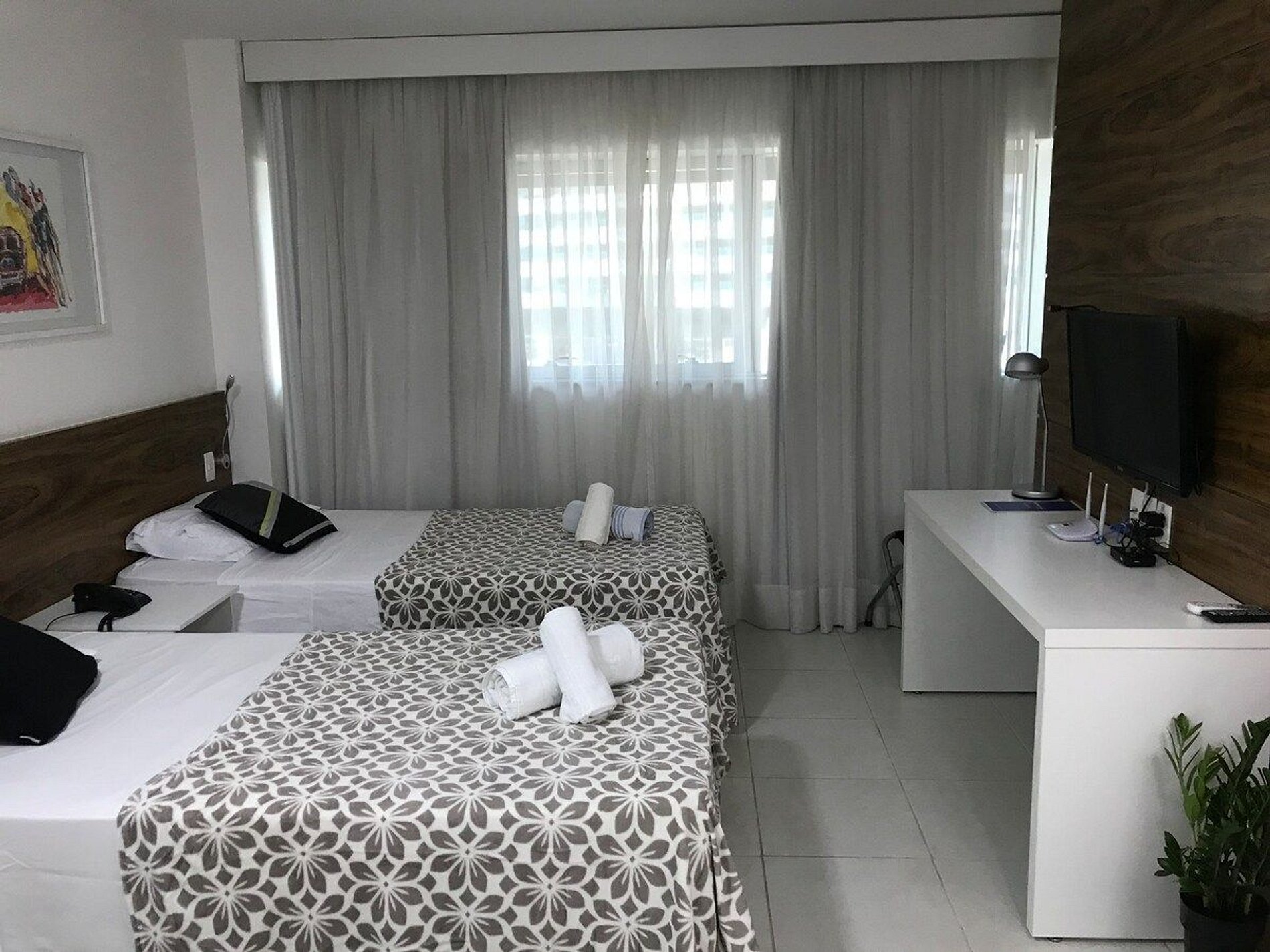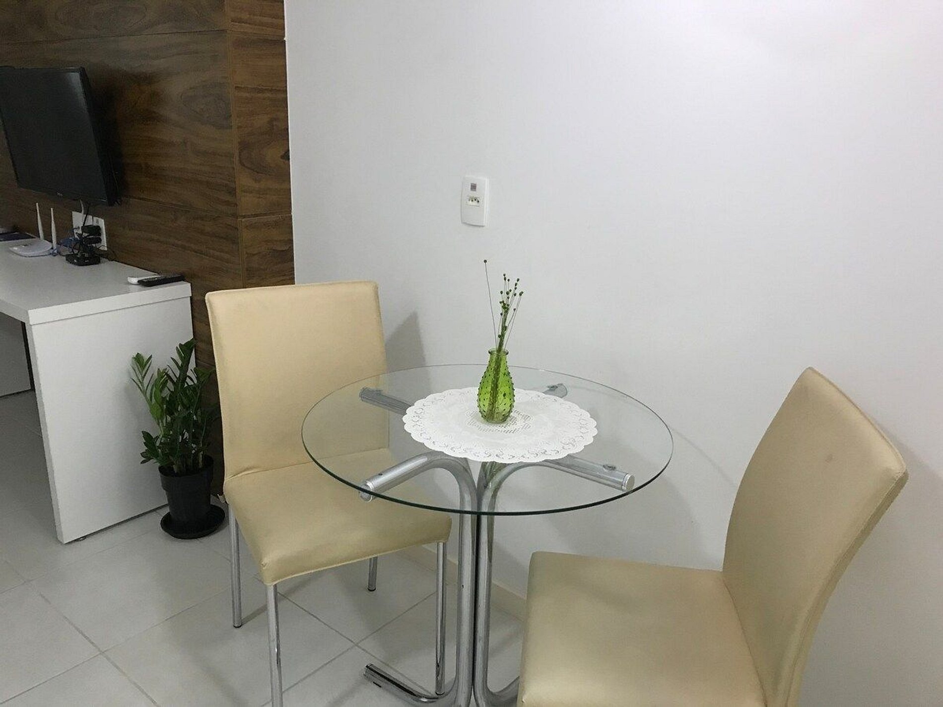 O flat, com 27m², possui ar condicionado e black-out para uma noite tranquila de sono. Além disso, o hotel conta com serviço de quarto 24hrs, roupas de cama limpas e higienizadas e um chuveiro incrível para um banho relaxante. E se caso preferir preparar sua própria comida, o ap possui cozinha compacta para refeições básicas e equipada com cooktop, sanduicheira, cafeteira, mircoondas e geladeira para guardar o seus alimentos. A recepção e segurança funcionam 24 horas por dia, proporcionando tranquilidade durante toda a sua estadia.
