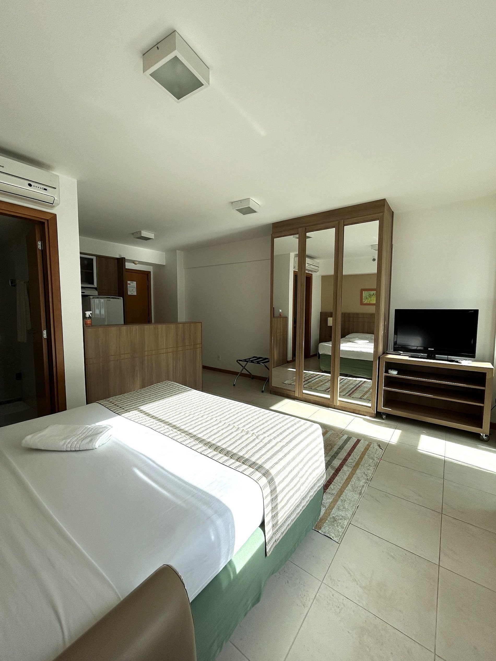 Acomodação 9º andar: Nossa equipe oferece uma experiência excepcional para os hóspedes. Com acomodações confortáveis, serviço de qualidade e atendimento humanizado, garantimos que sua estadia seja memorável. O flat, com 22m², possui ar condicionado e black-out para uma noite tranquila de sono. Além disso, o hotel conta com serviço de quarto 24hrs, roupas de cama limpas e higienizadas e um chuveiro incrível para um banho relaxante. E se caso preferir preparar sua própria comida, o ap possui cozinha compacta para refeições básicas, e geladeira para guardar o seus alimentos A recepção e segurança funcionam 24 horas por dia, proporcionando tranquilidade durante toda a sua estadia. Queremos que vocês se sintam em casa. Estamos prontas para oferecer um atendimento personalizado e garantir que todas as suas necessidades sejam atendidas. Com serviço de quarto e serviços de manutenção disponíveis quando necessário, você terá uma estadia confortável e conveniente.
