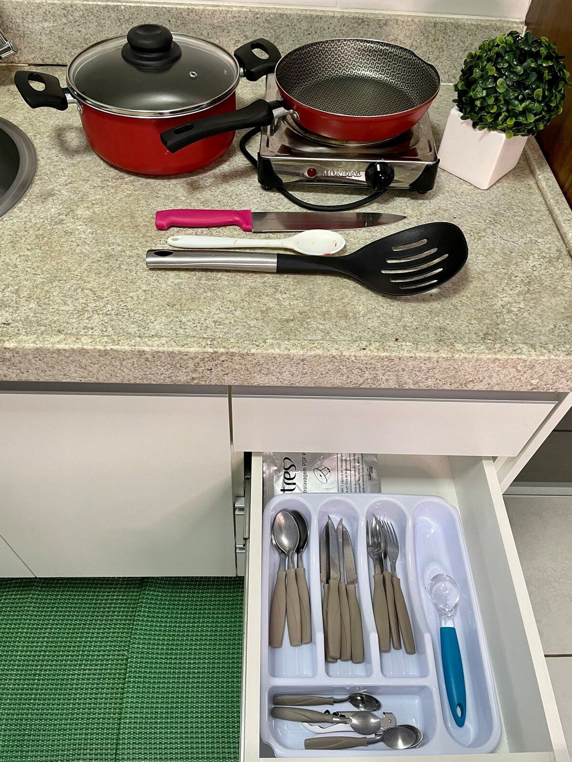 O flat, com 44m², possui ar condicionado e black-out para uma noite tranquila de sono. Além disso, o hotel conta com serviço de quarto 24hrs, roupas de cama limpas e higienizadas e um chuveiro incrível para um banho relaxante. E se caso preferir preparar sua própria comida, o ap possui cozinha compacta para refeições básicas, e geladeira para guardar o seus alimentos. A recepção e segurança funcionam 24 horas por dia, proporcionando tranquilidade durante toda a sua estadia.