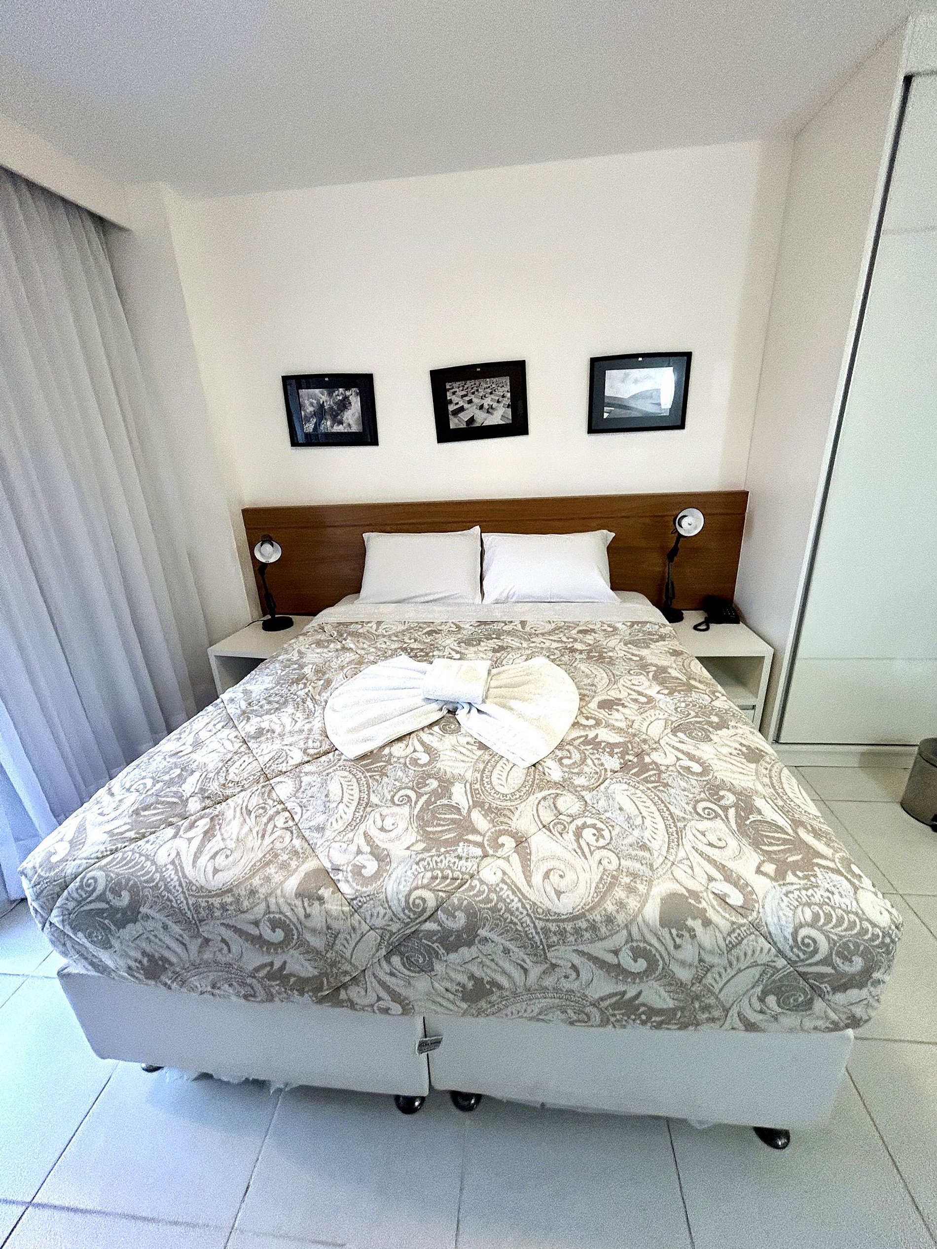 O flat, com 27m², possui ar condicionado e black-out para uma noite tranquila de sono. Além disso, o hotel conta com serviço de quarto 24hrs, roupas de cama limpas e higienizadas e um chuveiro incrível para um banho relaxante. E se caso preferir preparar sua própria comida, o ap possui cozinha compacta para refeições básicas, e geladeira para guardar o seus alimentos. A recepção e segurança funcionam 24 horas por dia, proporcionando tranquilidade durante toda a sua estadia.