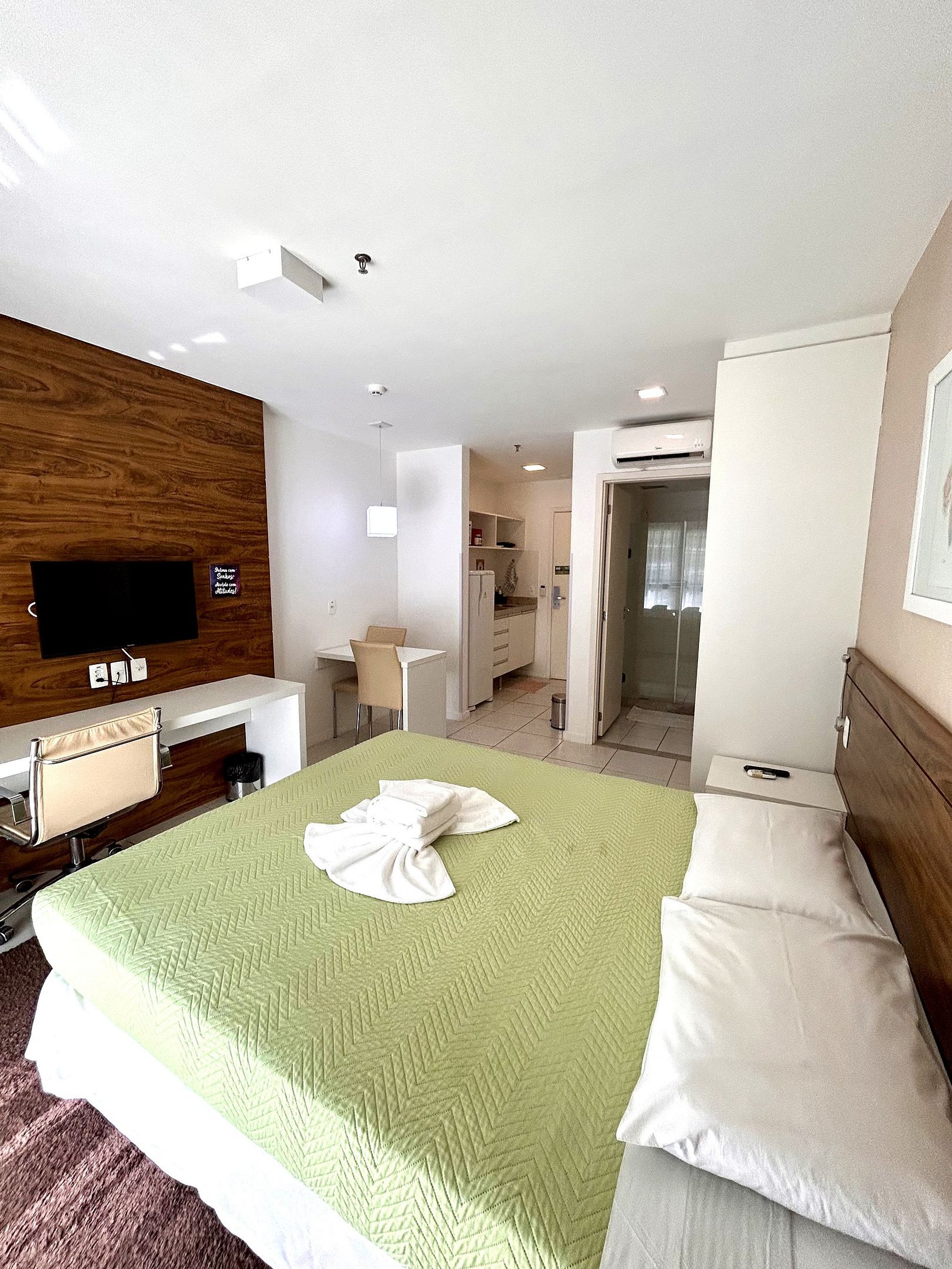 Acomodação 3º andar: Nossa equipe oferece uma experiência excepcional para os hóspedes. Com acomodações confortáveis, serviço de qualidade e atendimento humanizado, garantimos que sua estadia seja memorável. O flat possui ar condicionado e black-out para uma noite tranquila de sono. Além disso, o hotel conta com serviço de quarto 24hrs, roupas de cama limpas e higienizadas e um chuveiro incrível para um banho relaxante. E se caso preferir preparar sua própria comida, o ap possui cozinha compacta para refeições básicas, e geladeira para guardar o seus alimentos. A recepção e segurança funcionam 24 horas por dia, proporcionando tranquilidade durante toda a sua estadia. Queremos que vocês se sintam em casa. Estamos prontas para oferecer um atendimento personalizado e garantir que todas as suas necessidades sejam atendidas. Além disso, temos uma varanda encantadora onde você pode aproveitar um lindo final de tarde e relaxar. Com serviço de quarto e serviços de manutenção disponíveis quando necessário, você terá uma estadia confortável e conveniente.