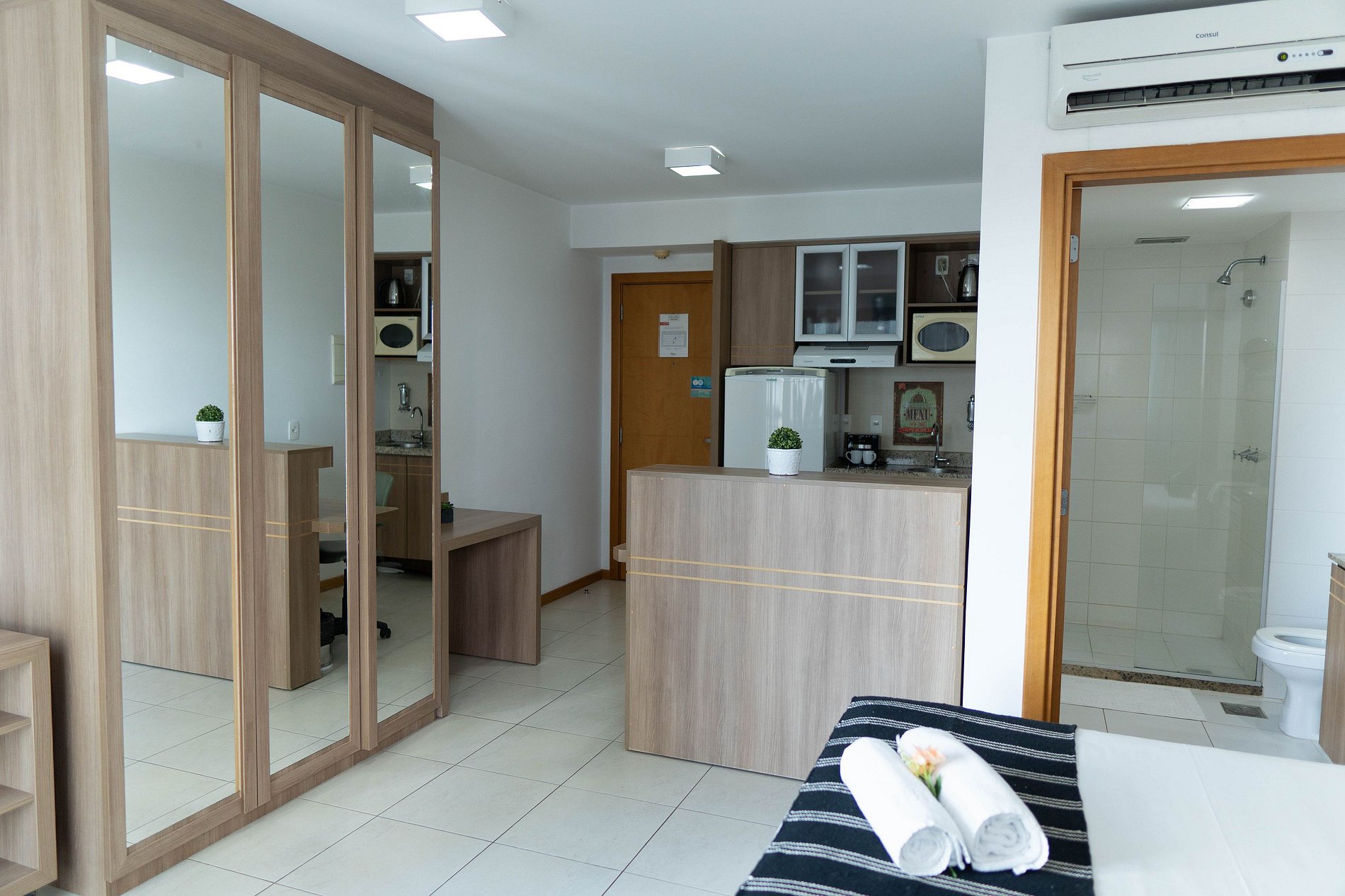 Acomodação 6º andar: Nossa equipe oferece uma experiência excepcional para os hóspedes. Com acomodações confortáveis, serviço de qualidade e atendimento humanizado, garantimos que sua estadia seja memorável. O flat, com 22m², possui ar condicionado e black-out para uma noite tranquila de sono. Além disso, o hotel conta com serviço de quarto 24hrs, roupas de cama limpas e higienizadas e um chuveiro incrível para um banho relaxante. E se caso preferir preparar sua própria comida, o ap possui cozinha compacta para refeições básicas, e geladeira para guardar o seus alimentos A recepção e segurança funcionam 24 horas por dia, proporcionando tranquilidade durante toda a sua estadia. Queremos que vocês se sintam em casa. Estamos prontas para oferecer um atendimento personalizado e garantir que todas as suas necessidades sejam atendidas. Com serviço de quarto e serviços de manutenção disponíveis quando necessário, você terá uma estadia confortável e conveniente.