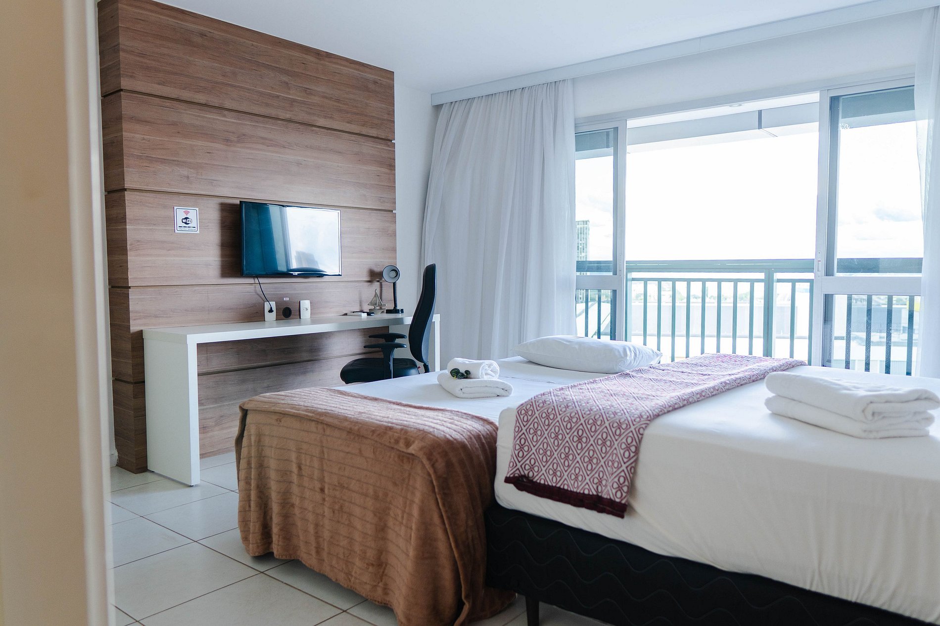 Estacionamento privativo com segurança 24hrs no subsolo do hotel (pago diretamente no hotel) e acesso a áreas de lazer como piscinas, academia, sauna e spa (O spa é pago a parte) com bastante comodidade para sua melhor temporada em Brasília.