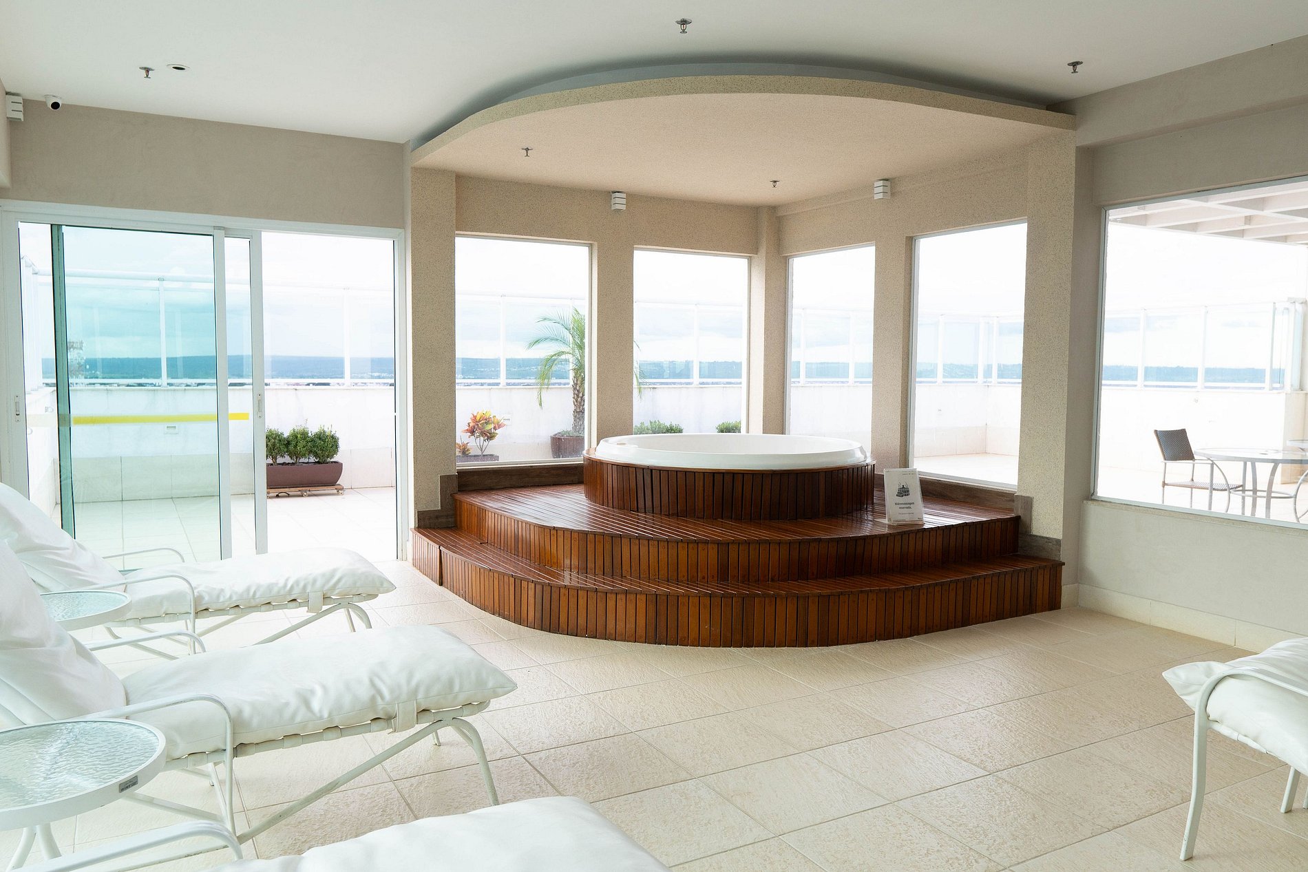 Acesso Completo – Conforto, lazer e praticidade ao seu alcance Durante sua estadia, aproveite todas as comodidades que o hotel oferece para tornar sua experiência ainda mais especial. Mantenha sua rotina em dia na academia bem equipada, relaxe na sauna ou desfrute momentos de tranquilidade na jacuzzi (serviço adicional) e no terraço ao ar livre – perfeitos para aproveitar o sol e recarregar as energias. Para maior comodidade, o hotel também dispõe de estacionamento coberto no subsolo (serviço adicional), garantindo praticidade e segurança durante toda a sua hospedagem.