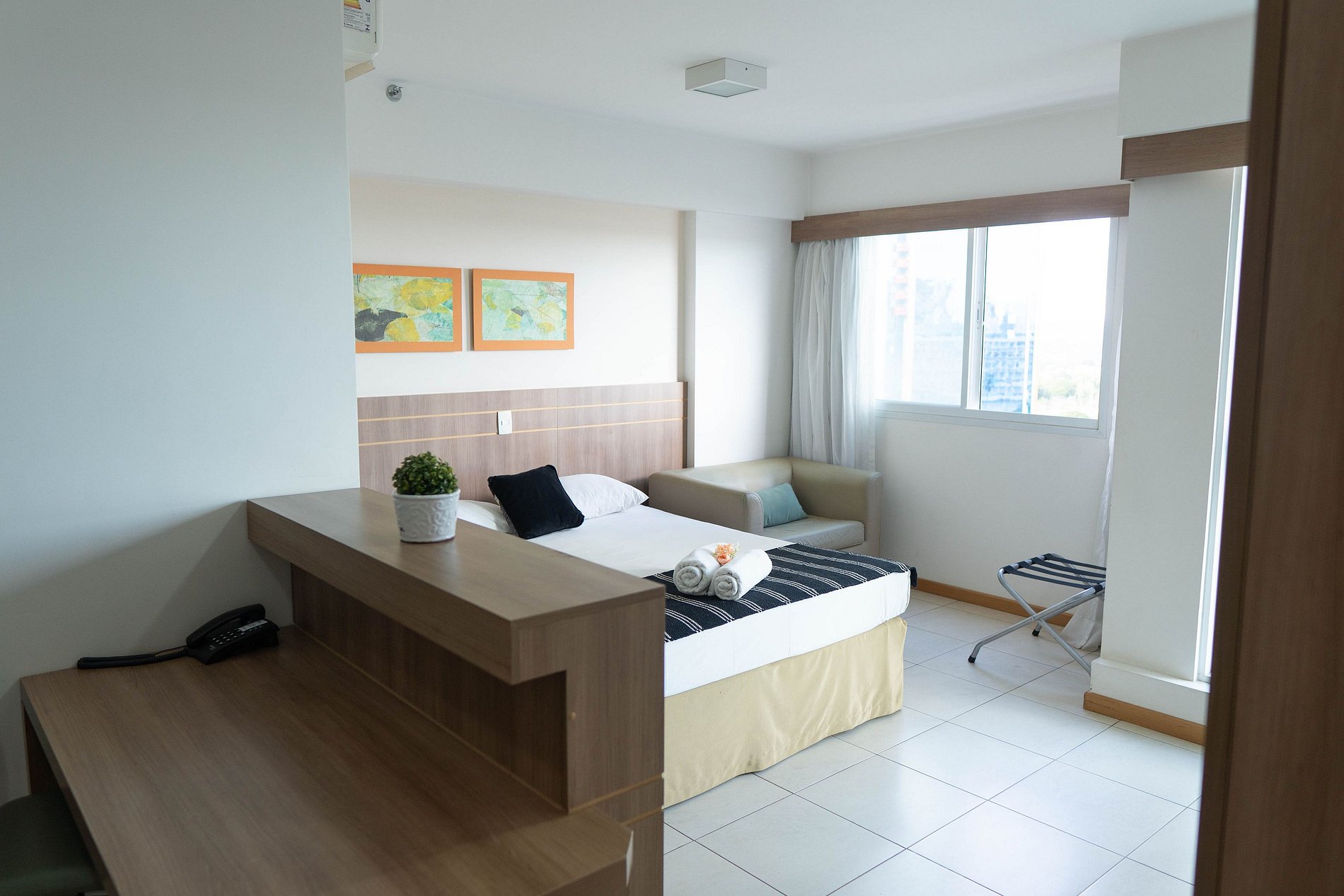 Acomodação 6º andar: Nossa equipe oferece uma experiência excepcional para os hóspedes. Com acomodações confortáveis, serviço de qualidade e atendimento humanizado, garantimos que sua estadia seja memorável. O flat, com 22m², possui ar condicionado e black-out para uma noite tranquila de sono. Além disso, o hotel conta com serviço de quarto 24hrs, roupas de cama limpas e higienizadas e um chuveiro incrível para um banho relaxante. E se caso preferir preparar sua própria comida, o ap possui cozinha compacta para refeições básicas, e geladeira para guardar o seus alimentos A recepção e segurança funcionam 24 horas por dia, proporcionando tranquilidade durante toda a sua estadia. Queremos que vocês se sintam em casa. Estamos prontas para oferecer um atendimento personalizado e garantir que todas as suas necessidades sejam atendidas. Com serviço de quarto e serviços de manutenção disponíveis quando necessário, você terá uma estadia confortável e conveniente.