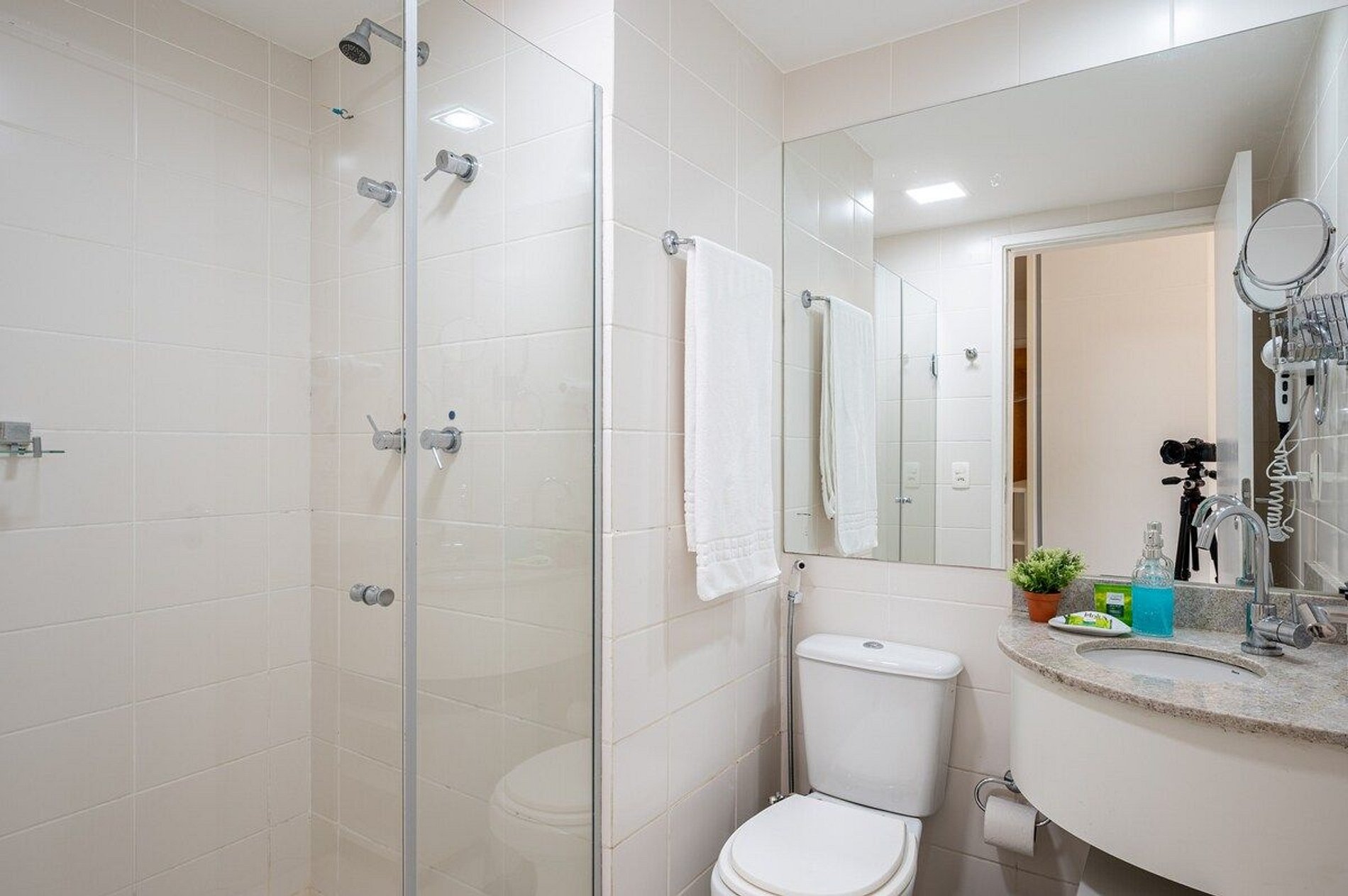 - Banheiro completo com chuveiro quente, secador de cabelo e ducha higiênica