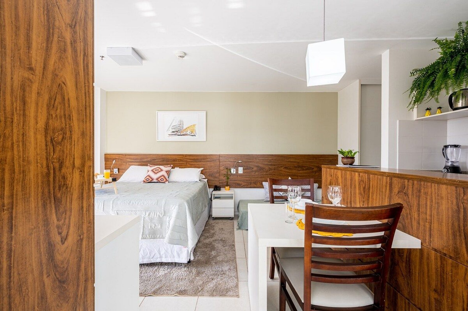 - Nosso apartamento possui 1 cama queen e uma bicama.