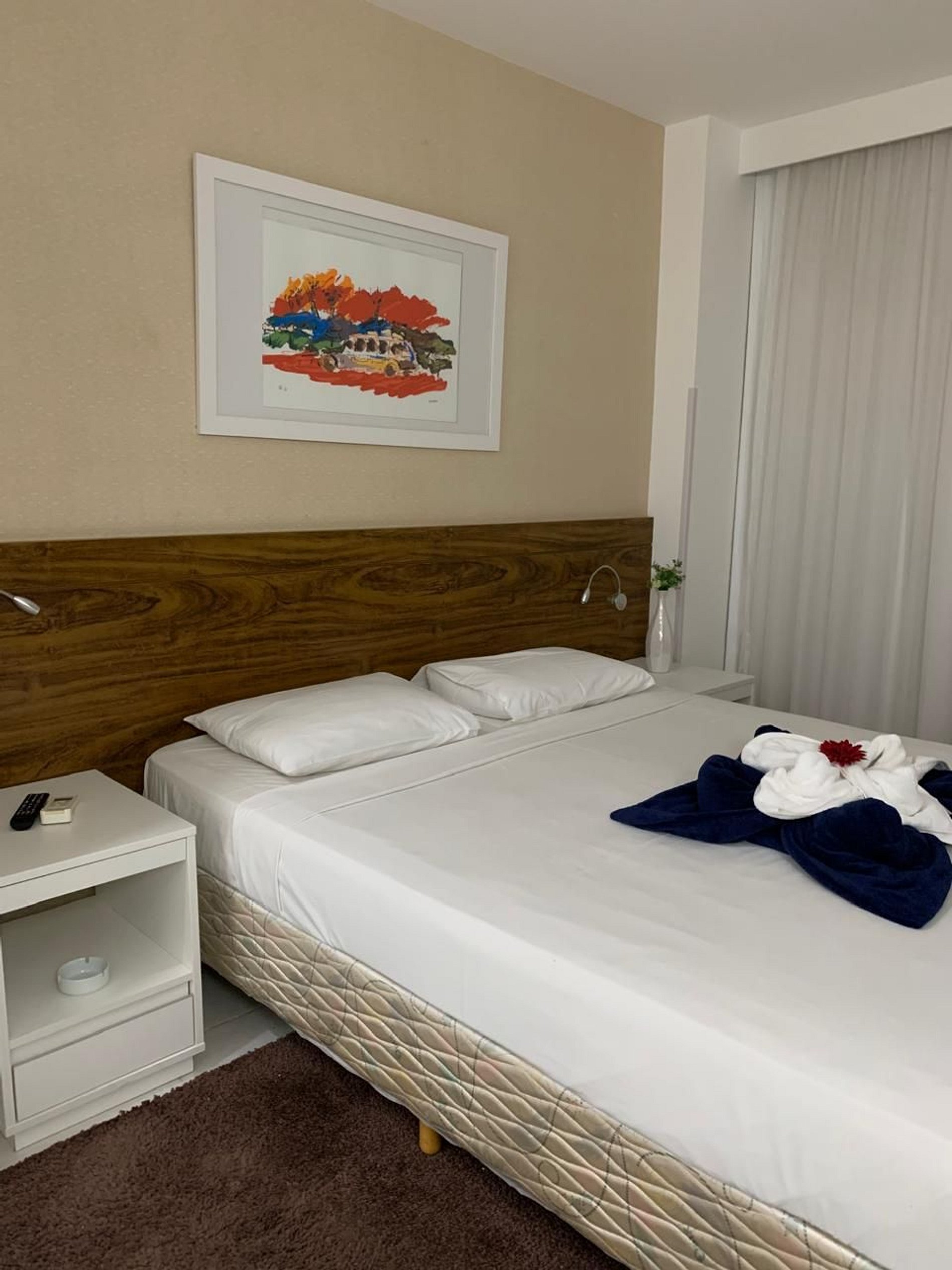 O flat, com aproximadamente 27m², possui ar condicionado e black-out para uma noite tranquila de sono. Além disso, o hotel conta com serviço de quarto 24hrs onde você poderá solicitar almoço/janta (consulte valores). Disponibilizamos roupas de cama limpas e higienizadas e um chuveiro incrível para um banho relaxante. E se caso preferir preparar sua própria comida, o ap possui cozinha compacta para refeições básicas, e geladeira para guardar o seus alimentos. A recepção e segurança funcionam 24 horas por dia, proporcionando tranquilidade durante toda a sua estadia.