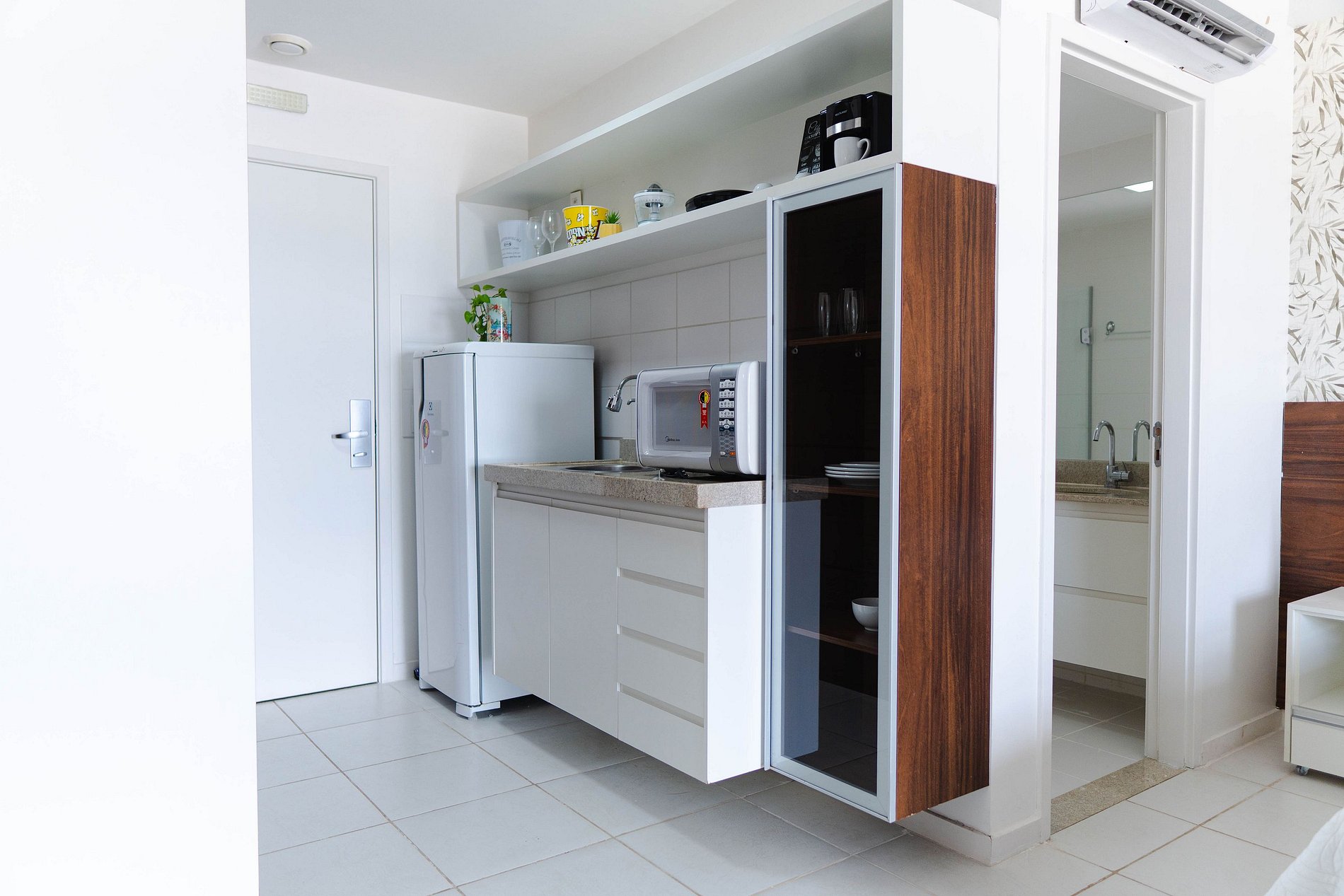 O flat, com 37m², possui ar condicionado e black-out para uma noite tranquila de sono. Além disso, o hotel conta com serviço de quarto 24hrs, roupas de cama limpas e higienizadas e um chuveiro incrível para um banho relaxante. E se caso preferir preparar sua própria comida, o ap possui cozinha compacta para refeições básicas, e geladeira para guardar o seus alimentos. A recepção e segurança funcionam 24 horas por dia, proporcionando tranquilidade durante toda a sua estadia.