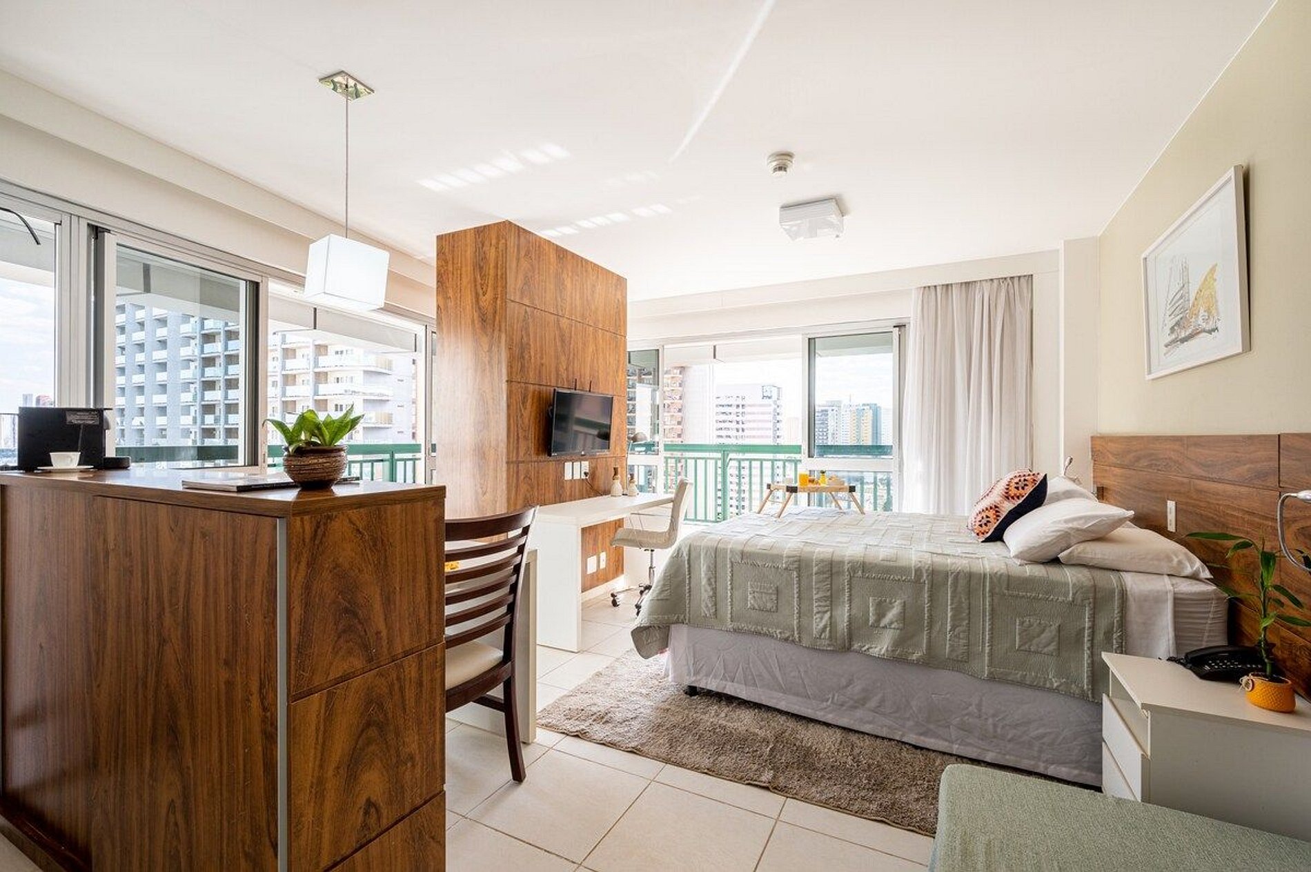 Desfrute de uma estadia confortável em um flat amplo com 32m², bem equipado e com atendimento humanizado. Ideal para quem busca uma experiência prática e acolhedora, seja por poucos dias ou por longas temporadas.