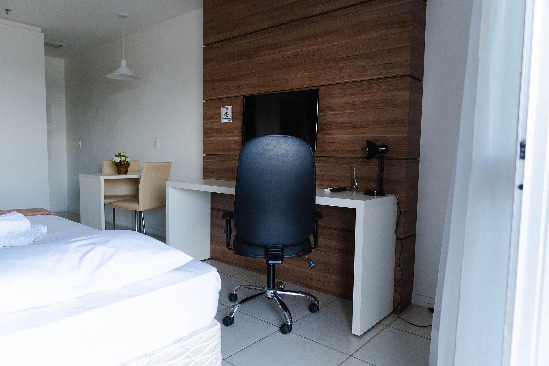 O flat, com 37,40m², possui ar condicionado e black-out para uma noite tranquila de sono. Além disso, o hotel conta com serviço de quarto 24hrs, roupas de cama limpas e higienizadas e um chuveiro incrível para um banho relaxante. E se caso preferir preparar sua própria comida, o ap possui cozinha compacta para refeições básicas, e geladeira para guardar o seus alimentos A recepção e segurança funcionam 24 horas por dia, proporcionando tranquilidade durante toda a sua estadia.