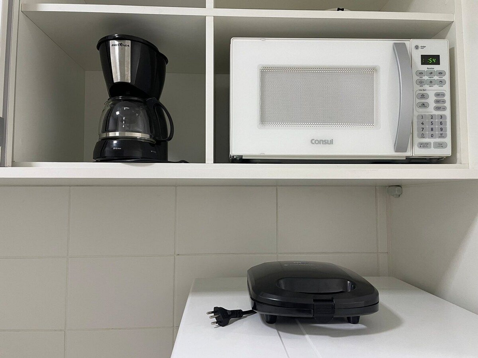 O flat, com 37m², possui ar condicionado e black-out para uma noite tranquila de sono. Além disso, o hotel conta com serviço de quarto 24hrs, roupas de cama limpas e higienizadas e um chuveiro incrível para um banho relaxante. E se caso preferir preparar sua própria comida, o ap possui cozinha compacta para refeições básicas, e geladeira para guardar o seus alimentos. A recepção e segurança funcionam 24 horas por dia, proporcionando tranquilidade durante toda a sua estadia.